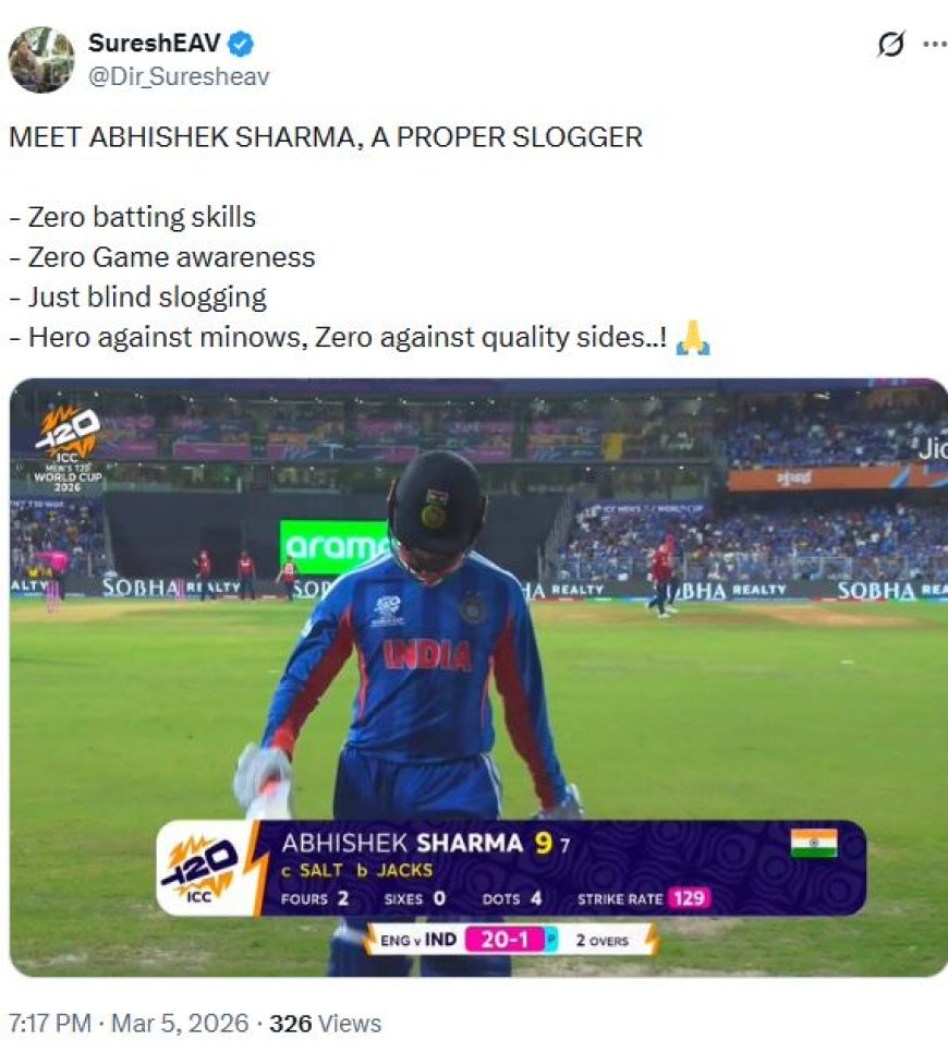 In the semifinal against England, Sharma managed only 9 runs off 7 balls, which led to criticism from fans and experts on social media.